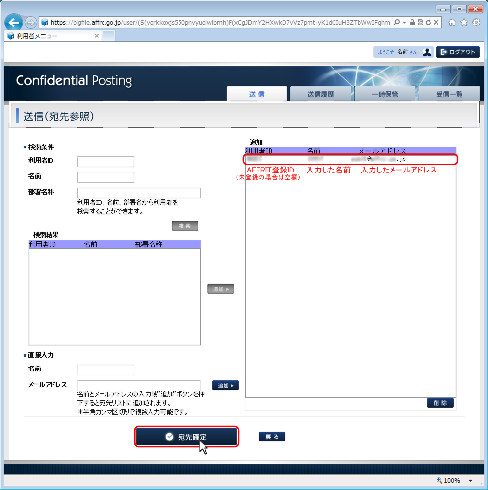 宛先(受信者)は、AFFRIT利用者でなくても指定できます。